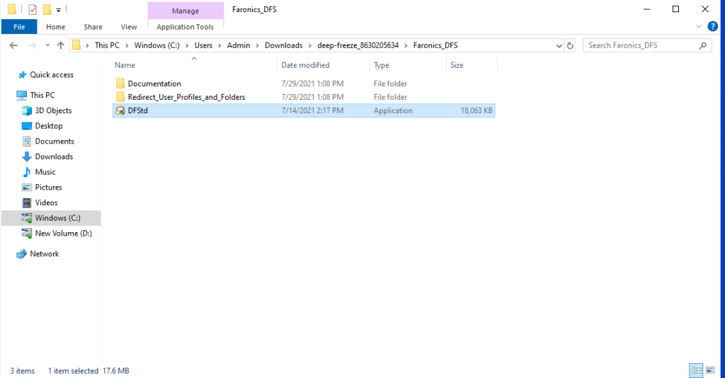 Bước 2: Sau khi đã tải xong, bạn giải nén tệp vừa tải về. Mở thư mục chứa file Deep Freeze, chọn file cài có tên DFStd.exe.