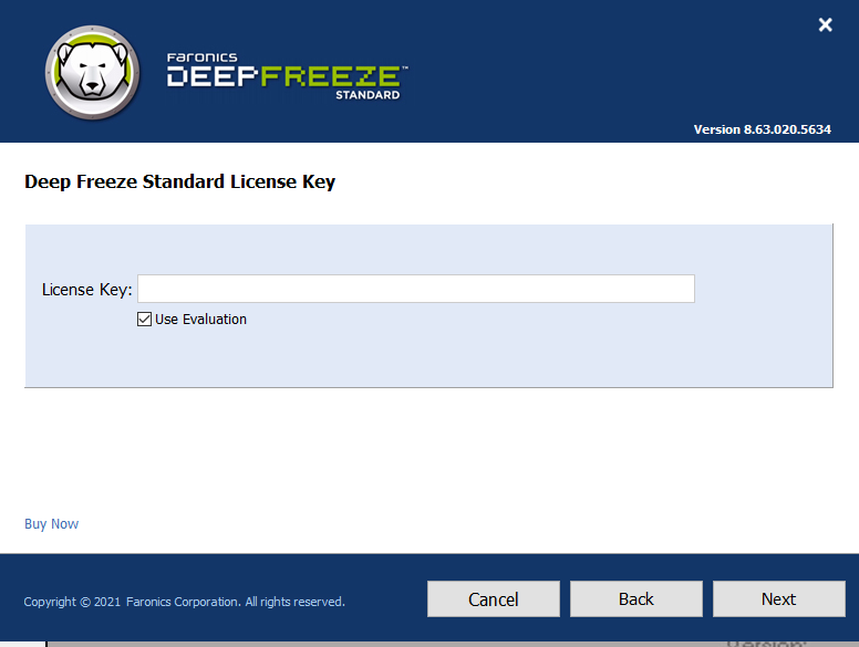 Truy cập link tải Deep Freeze > Mở thư mục chứa file Deep Freeze, chọn file cài có tên DFStd.exe > Chọn Next > chọn I accept the terms in the License Agreemen nhấn Next > Chọn Use Evaluation nhấn Next > Chọn ổ đĩa bạn muốn đóng băng chọn Next > Chọn Install.