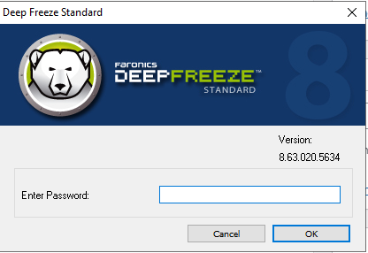 Bước 2: Nếu bạn có đặt mật khẩu trong lúc cài đặt thì nhập ở mục Enter Password. Còn không bạn nhấn OK để vào giao diện của Deep Freeze.