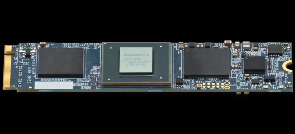 Phần cứng bên trong module là chip tăng tốc SAKURA-II do công ty EdgeCortix phát triển, vốn được thiết kế ban đầu cho các thiết bị nhúng tiết kiệm điện như Raspberry Pi 5 và các bo mạch dùng chip ARM. Chip tích hợp bộ xử lý thần kinh (NPU) hiệu suất cao cùng 20MB bộ nhớ đệm trong chip, toàn bộ đóng gói trong kích thước 19x19mm, nhỏ đến mức có thể nhầm với một thanh RAM hay ổ SSD mini.